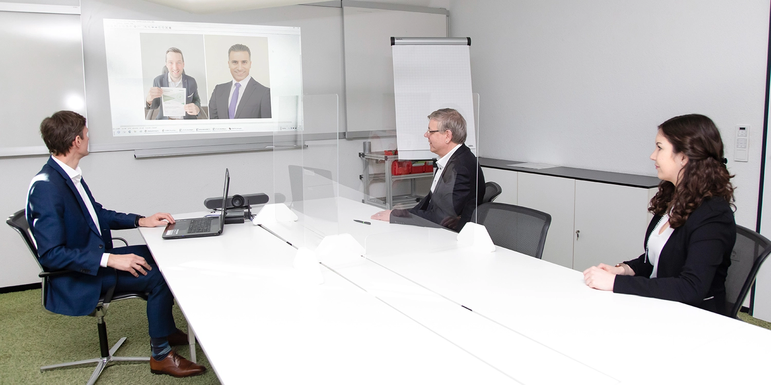 DEBATIN zeichnet Henkel als „Sustainability Champion“ aus. Über die virtuelle Urkundenverleihung freuen sich (im Raum von links nach rechts; per Videokonferenz zugeschaltet von links nach rechts):