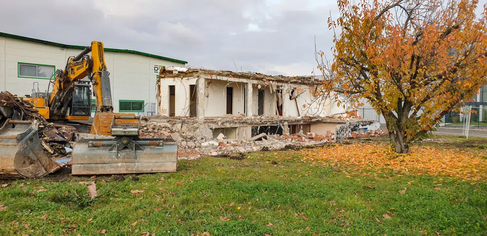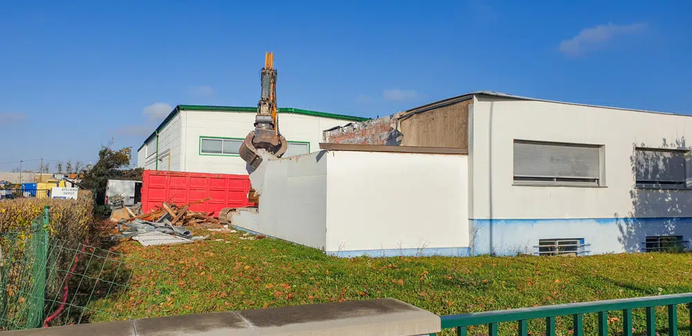 Schon in der ersten Juli-Hälfte ist der Neubau fertig geworden und das DEBATEAM aus Hoenheim konnte in die neuen Büros einziehen. Etwa Anfang November wird der Umbau fertig sein, so dass im Laufe des Novembers das Lager reorganisiert werden kann. Alles bereit also für den Um- und Einzug unserer L.E.S.S.-Kolleginnen und ‑Kollegen von Chelles nach Hoenheim. Voraussichtlich wird die Grünfläche Anfang nächsten Jahres instand gesetzt.