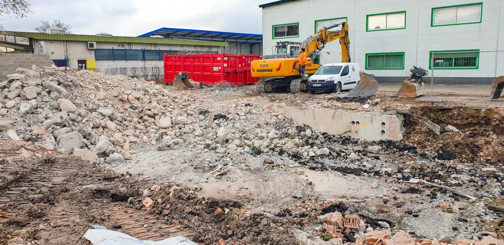 Im Zuge des Um- und Neubaus wurde ein separates Bürogebäude, das vermietet war, abgerissen, ein neues Bürogebäude an das Hauptgebäude angebaut und sowohl dieses als auch Lager und LKW-Anlieferung und ‑Abholung neu durchdacht. Zusätzlich sind neue Sozialräume für das DEBATEAM entstanden.